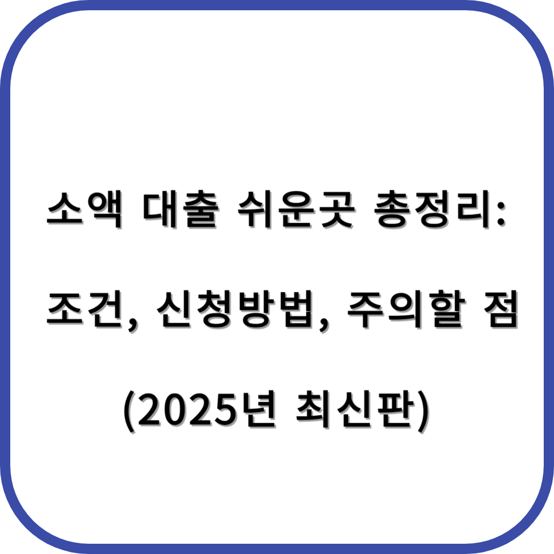 소액 대출 쉬운곳 총정리: 조건, 신청방법, 주의할 점 (2025년 최신판)